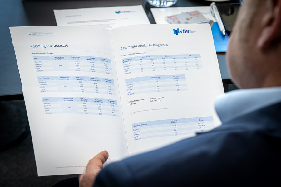 Am 19. März 2025 lud der VÖB zum Aktienmarktprognose-Pressegespräch ein. Wie gewohnt stellten die VÖB-Experten aus den Mitgliedsinstituten BayernLB, DekaBank, Helaba, LBBW und NORD/LB ihre Prognosen zur Entwicklung an den Aktienmärkten vor.
