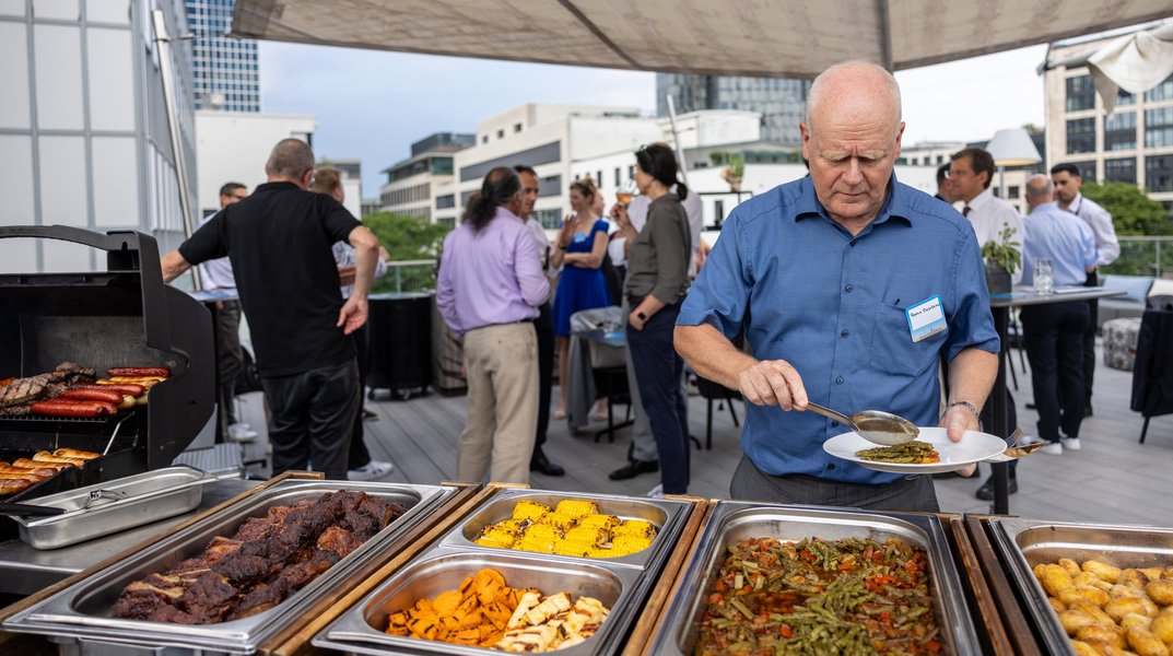 Am 27. Juni 2024 hat der VÖB zahlreiche Medienvertreter auf einer Dachterrasse im Frankfurter Westend zum Presse-BBQ eingeladen. VÖB-Präsident Eckhard Forst begrüßte die Gäste mit einem Rückblick auf die Europawahl und erläuterte seine Erwartungen an die neue Europäische Kommission. Er unterstrich die Bedeutung der deutschen Förderbanken bei der Finanzierung der Transformation.